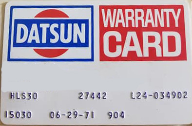 When you purchased a new 240Z, you were typically given a Warranty Card by the dealership. That card usually included your name, address, VIN, engine number, paint color code and date of purchase. A number was also stamped in the lower left corner of the card. That number represented the number of the Datsun dealership where you purchased the car. When you buy your used 240Z many years later, this card is sometimes included in the previous owner’s available documentation. However, additional documentation that tells where the original selling dealership was isn’t available. Based on information that is currently available in the registry database, the following are the known corresponding dealerships for the numbers on the Warranty Card. The database is currently only a small subset of the total number of dealerships. Please email zregistry@aol.com if you would like to submit evidence to add a dealership to the list.
