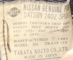 Vehicle History: A K purchased the car new in January 1970 from the Datsun Dealer in Orlando, FL. It was A K’s daily driver until number two daughter arrived in 1980. Two baby seats would not fit in the rear area. One would fit fine. But not two. The little Z became a “spare” and sat in the garage next to the 1953 Bentley R-Type. In 1983 the Z and the B went into storage on the family “ranch” near Roanoke, VA. The Z had 85,000 miles. The B had 48,000. The family moved overseas. Both cars were removed from storage in 1999. The B went to Atlanta for restoration. The Z was refreshed here in Texas over a 5 year period. It attended the National Z Convention in Dallas in 2006 and the same at Daytona in 2007. Where A K drove the oldest Z in existence still with the original buyer around the SCCA track inside the Daytona Speedway with reckless abandon. The oldest Z and the oldest driver. And the only lady on the circuit. It is driven monthly. Has 89,000 miles now. Looks like a million bucks. And its stablemate remains the B which now has 80,000 miles.
